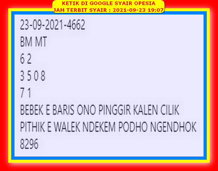 Kumpulan Syair Togel Hk Sabtu 11 September 2021 merupakan forum kode syair yang menyediakan berbagai macam jenis syair togel Hk terpercaya hari ini. Syair batarakala hk syair pandawa hk syair kampleng hk kalong hk syair naga mas hk syair putri duyung syair gucci mas syair hk prize dan masih banyak syair. Dengan hadirnya syair hk hongkong Hari ini semoga sedikit membantu para togeler dalam menentukan angka yang terbaik dan ini. Forum syair hk kode syair hk code syair hk syair hk malam ini prediksi hk prediksi hongkong Dibawah berikut kami team omiframe meliput data pengeluaran hk togel keluaran hk hasil result hongk. Dan juga syair hk vip yang kami sediain ini bukan sembarang syair melainkan syair syair yang paling terkenal di dunia togel saat ini.